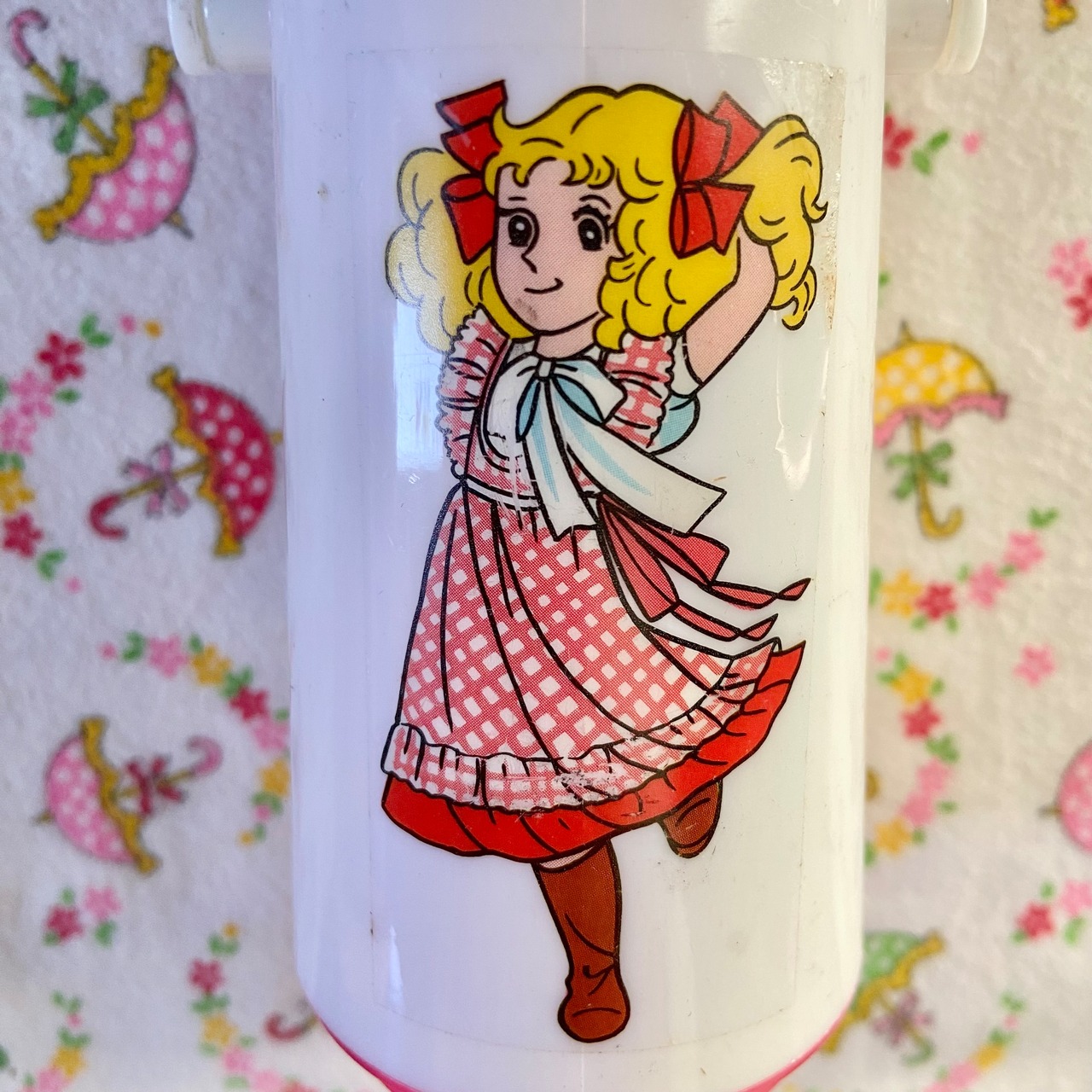 キャ◯ディーキャン◯ィーのシールが貼ってあるタイプ。少ーしはしがめくれてる。