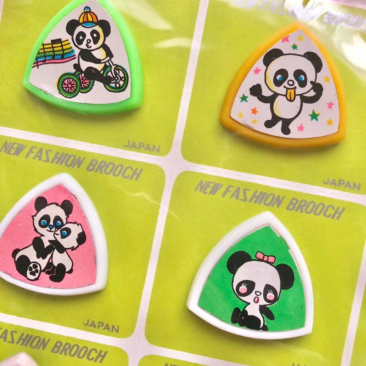 昭和レトロ★三角ブローチ★パンダちゃん★1シート12個セット
